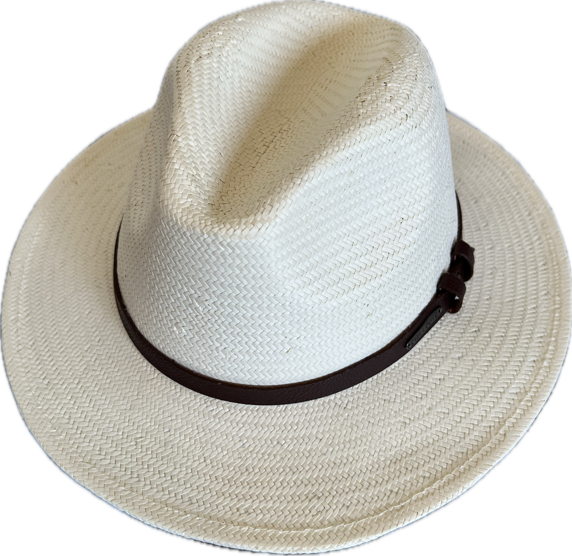 Mooie offwhite cowboyhoed met bruin riempje.